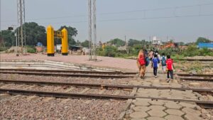 हर रोज़ स्थानीय लोग और स्कूली बच्चे जान जोखिम में डालकर रेलवे पटरी पार करते हैं।